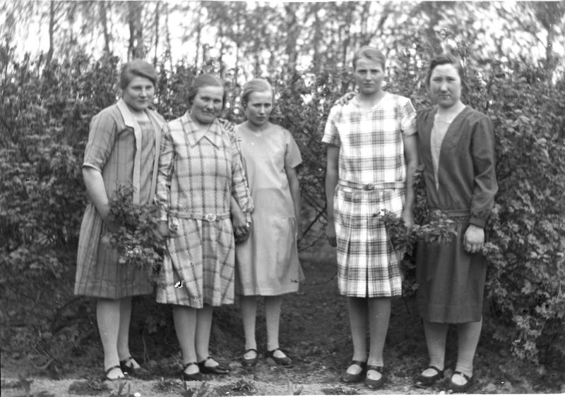 Vas. Elli Hakala myöh. Hämäläinen, Maria Pitkäaho, Hilda Kivistö, Hilma Kitusenmäki, Iida Isoaho. Oms. Ylä-Vannesluoma. Valokuvaaja Heikki Heikkola