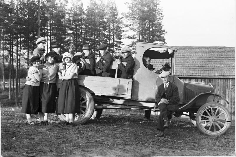 Rantanen. Ahon sahan Ford (Töysän Joulu 1988). Lavalla 2. oikealla Eino Lamminaho, Auton hytissä Eeti Kaukola. Valokuvaaja Heikki Heikkola