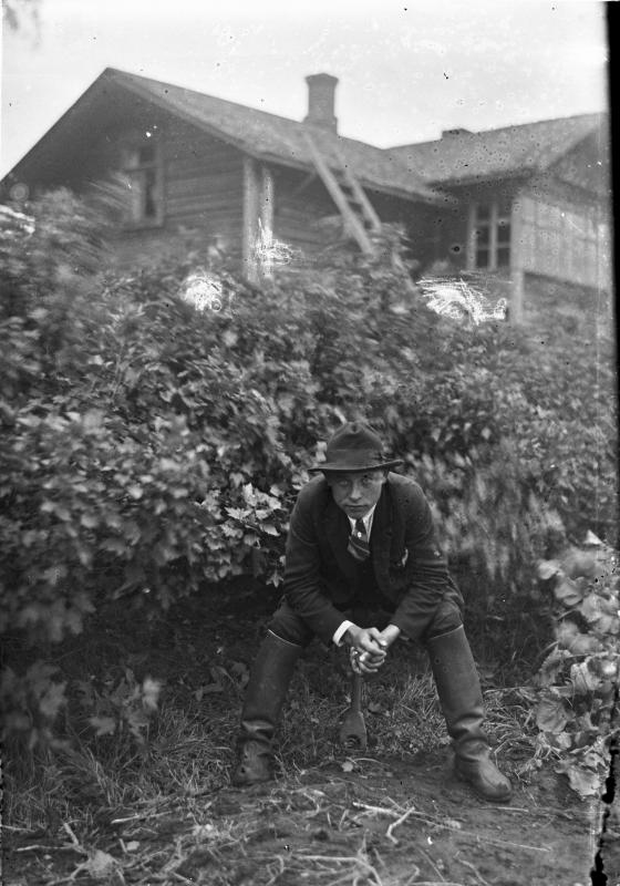 Artturi Mäkiranta. Takana Katajamäen talo.