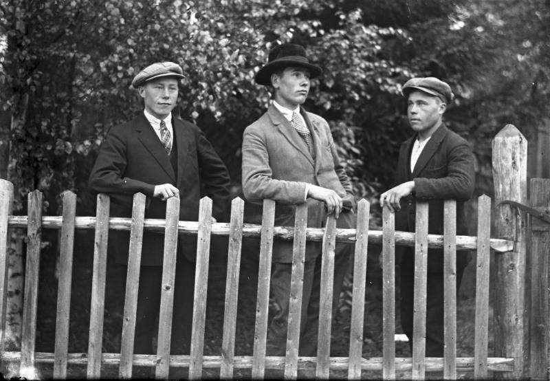 Artturi Mäkiranta, Onni Lamminaho (lempinimi Pahkaonni?) ja Urho Järvinen. Valokuvaaja Heikki Heikkola