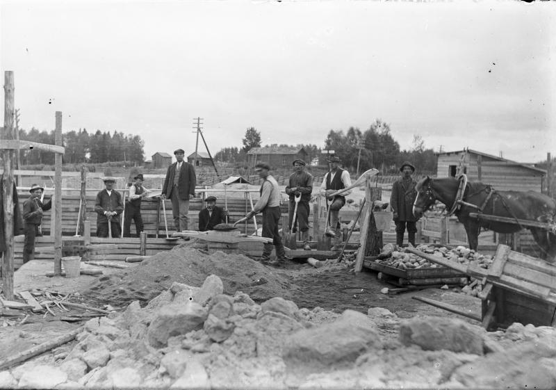 Töysän Osuusmeijerin perustuksen tekoa kesällä 1928.