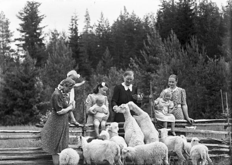 oik. edessä tyttö Terttu Yli-mutka, oik. takana Hilma Ruuhela (os Saari), oik. 3. Fiina Kuivasmäki, Valokuvaaja Heikki Heikkola