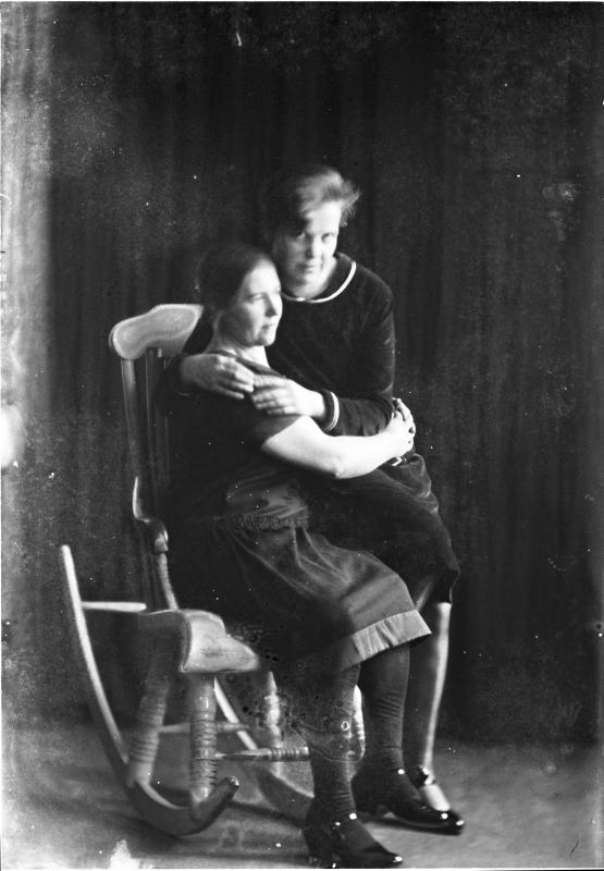 vas. Hilda Könni (myöhemmin Häkkinen) ja oik. Aino Virtanen (myöhemmin Hietamäki) Valokuvaaja Heikki Heikkola