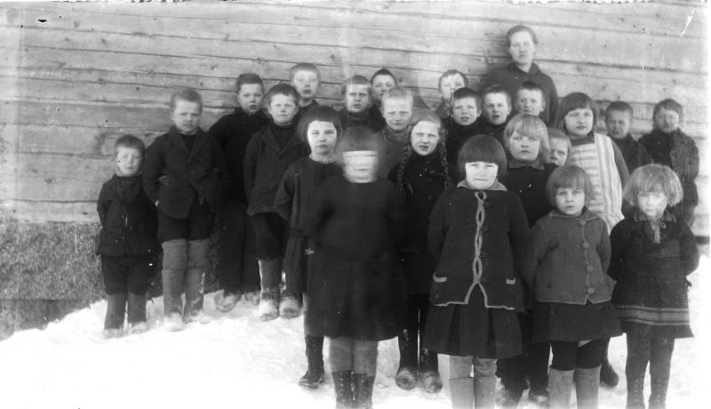 Toinen vas. Matti Riihimäki 4s talkana Jaakko Pelander,Irja Ommela, edessä kolmas oik. Kyllikki Suomela-Riihimäki, hänen takanaan Meeri Pakkala-Paavola ja lettipäinen Rauha Paavola-Tarkiainen. Takana opettaja Saima Aho. Valokuvaaja Heikki Heikkola