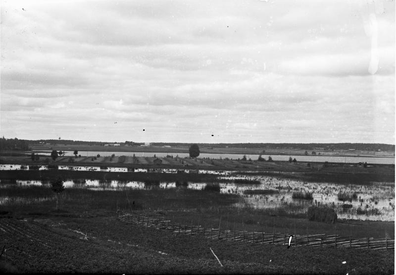 Töysän kirkko näkyy vasemmalla, kuva otettu Mäenniemenlammen ja Ponnenjärven takaa Kirkonkylän puolelle. Valokuvaaja Heikki Heikkola
