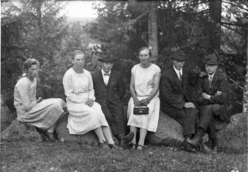 Ida Myllykoski, Anni Myllykoski, Hilma Haveri (Myllykoski), Toivo Haveri, Arvo Keskiniemi. Valokuvaaja Heikki Heikkola