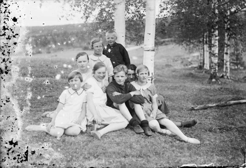 Edessä vas. Judit Fors, edessä toinen vasemmalta. Kerttu Fors, takana poika Pauli Rauhala, takana piilossa Yrjö Fors, edessä poika Risto Fors, Valokuvaaja Heikki Heikkola