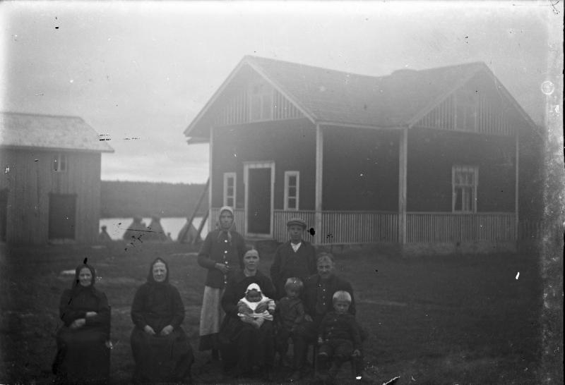 Korpela Housunkylässä. Kivikangas, Liisa Korpela os. Kivikangas. Hanna Ahola, Maija (os. Ahola) ja Matti Korpela + lapset, Mauri, Matti, Martti ja Manu. Valokuvaaja Heikki Heikkola