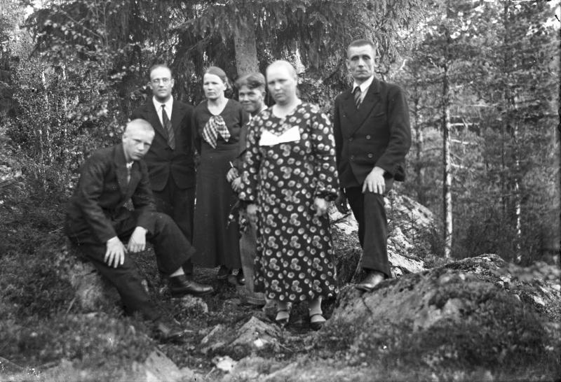 Oik. Vihtori ja Hilda Ojala, heidän poikansa Paavo vas. edessä istumassa. Vas. takana Kalle ja Kaino Ojala. Keskellä oleva mies mahdollisesti Reino Marttila. Valokuvaaja Heikki Heikkola