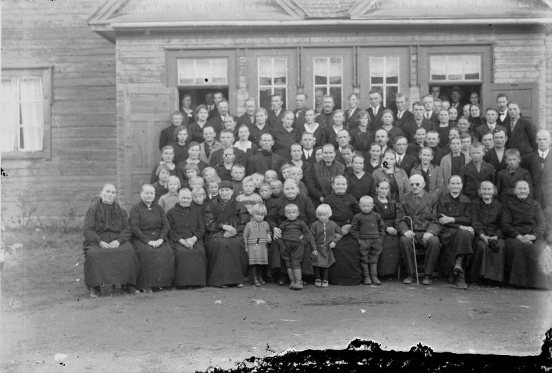 Edessä kolmas oik. Tekla Koskela, toinen rivi viides oik. (pikkupojan takana) Anna Holkko, Sandra Keisala puolittain Holkon vieressä olevan henkilön takana. Keisalasta viistoon oikealle seur. rivillä Väinö Holkko. Anna Holkon takana oik. Hilda Aumala, jonka vieressä Heikki Aumala.