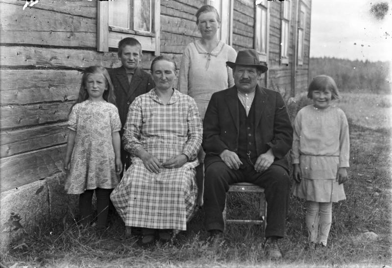 Myllykosken perhe Hilma ja Aleksanteri. Lapset vas. Martta, Uuno, Anni ja Hilma. Valokuvaaja Heikki Heikkola