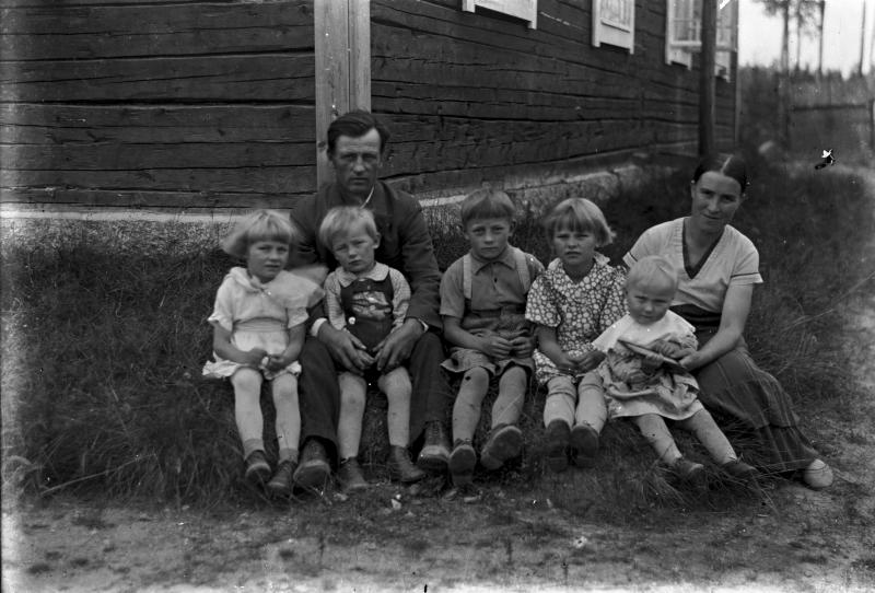 Heikki ja Aino Veikkola, lapset vas. Eila, Antero, Olavi, Terttu ja Eeva. Valokuvaaja Verner Vanhamäki