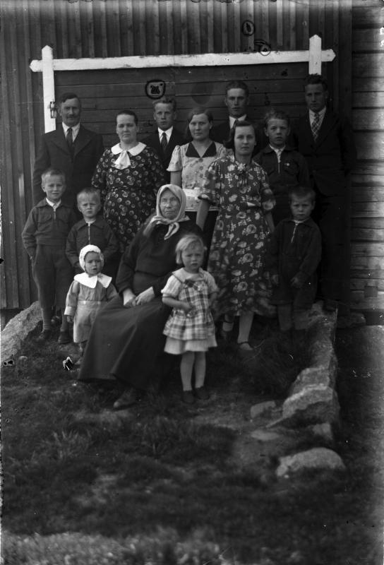 Takarivi vas. Peltonen Vihtori, Sulo, Eino ja Tauno. Seur rivi. Iida (Vihtorin vaimo), Tyyne (Einon vaimo) ja Vilho. Seur rivi. Ilmari, Urho, Katri Holkko (myöh. Ritala) ja Paavo. Edessä vas. Tarmo, istumassa Hanna Riihimäki, oik. Helinä.