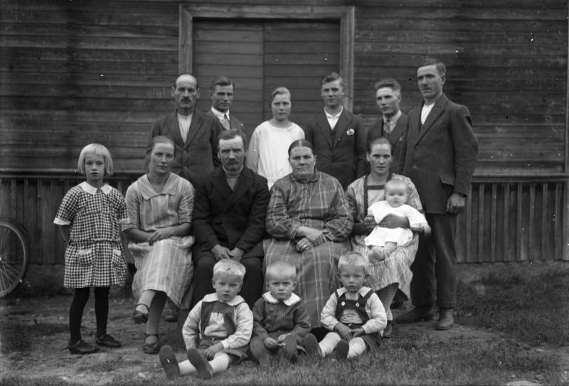 Harjun perhe 1928 Juho ja Elsa(ent.Pennala) keskellä takana vas. Erkki Lehtonen edessä vas. Hilda(ent.Harju) Lehtosen lapset Erkki ja Toivo edessä vas,Saima