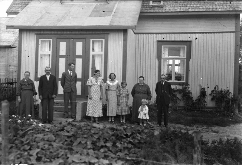 Maija ja Kalle Vuorela, Eero ja Lyyli Pennala, Hilda Vuorela, Aino Vuorela oik. Aleksi ja Hilma Pennala, edessä Maila Pennala. Vuorela. Valokuvaaja Verner Vanhamäki