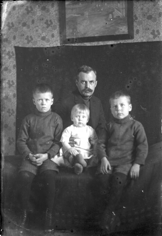 Urpo Kekoni (isä, ammatiltaan linjatarkastaja), pojat vas. Kari, Matti ja Pentti. Töysän asema. Valokuvaaja Heikki Heikkola
