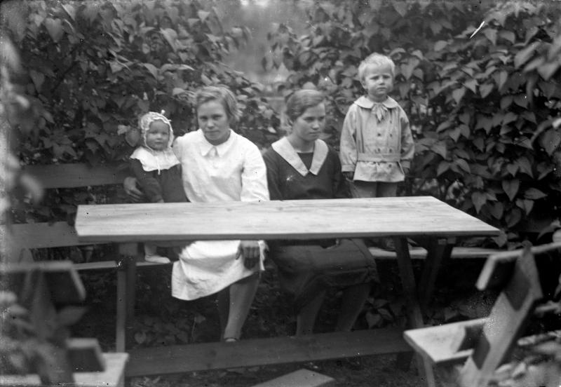 Kauppila Armi ja Ellen os. Kortesmäki, Helmi os. Kortesmäki ja Kalervo Saarela. Valokuvaaja Heikki Heikkola