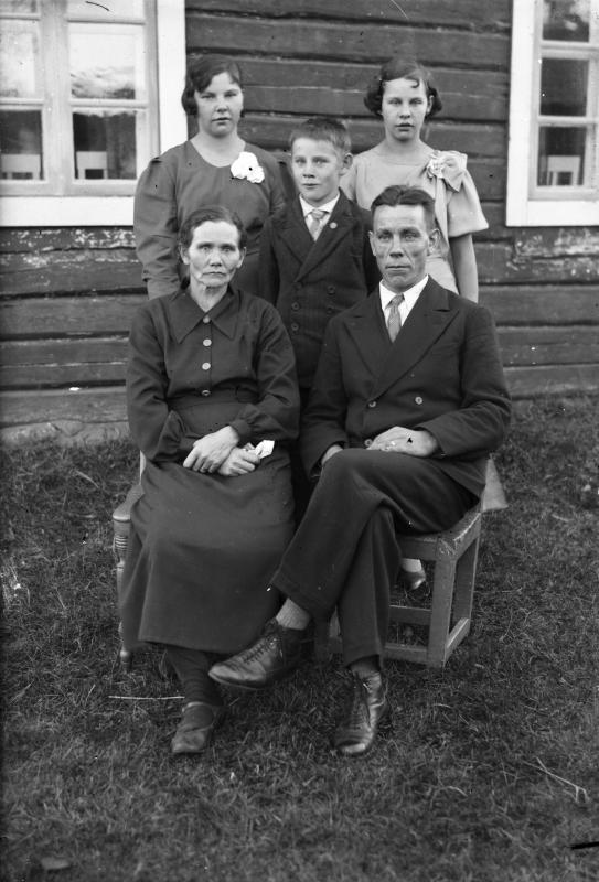 "Maria ja Erkki Onnela, Helvi, Irja ja Unto. ""Maija"" tuli sokeaksi aasialaisen takia." Valokuvaaja Heikki Heikkola