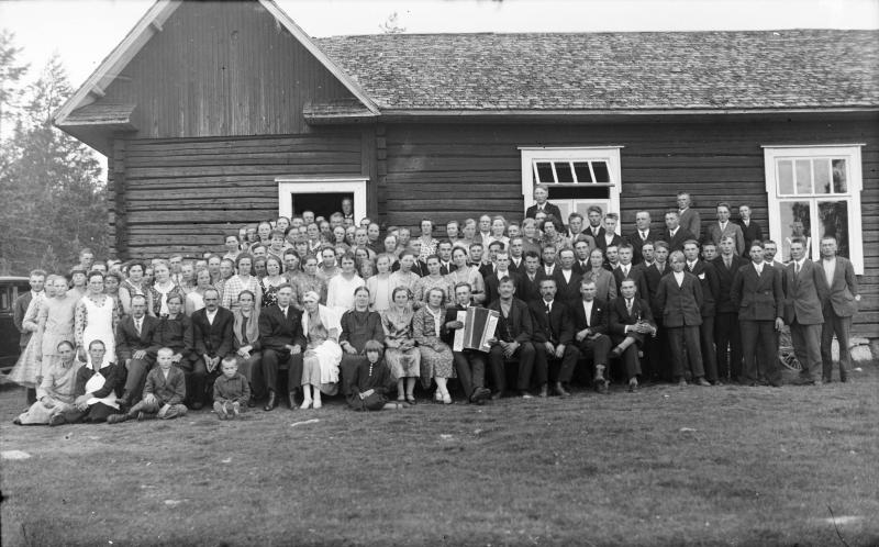 Hääpari Hilda (os. Koskela) ja Matti Kaunisto, häät 8.8.1931. Lyyli ja Matti Kiiltomäki (haitarinsoittaja). Valokuvaaja Verner Vanhamäki
