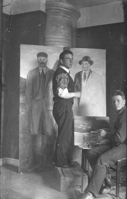 Vas. Taidemaalari Matti Annala ja Kaarlo Korpinen, näytelmäohjaaja, taiteilija. Valokuvaaja Verner Vanhamäki