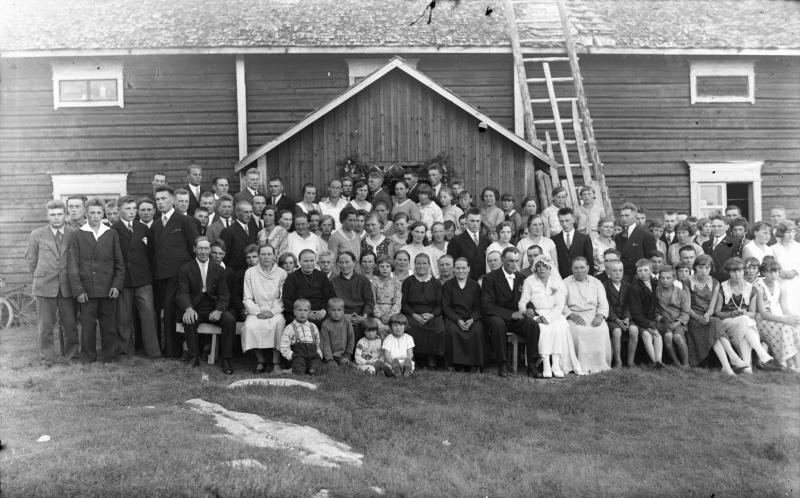 Juho Rasinperä ja Maria Linjalan häät 1.8.1931.Hakojärven työväentalolla. 1. vas Väinö Jokinen Valokuvaaja Verner Vanhamäki