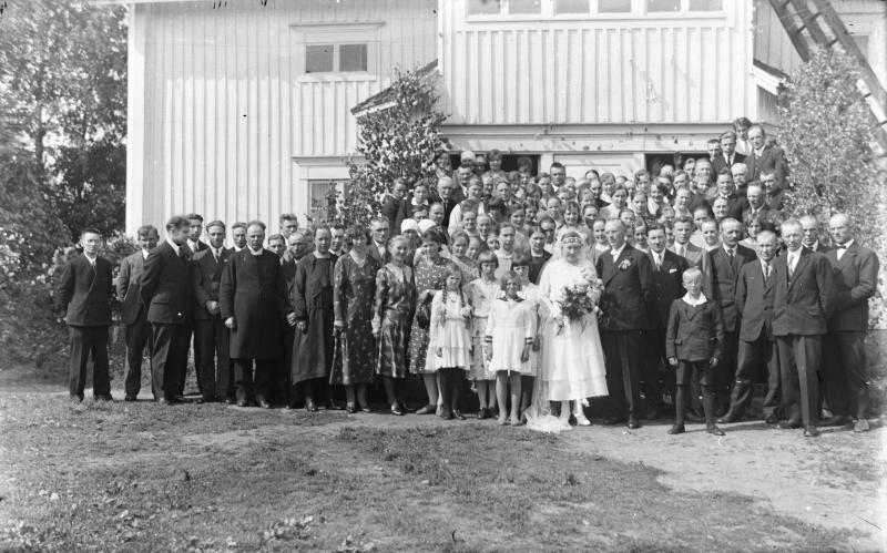 Impi os. Härkönen ja Väinö Valtaalan hääkuva. 12.7.1931. Vasemmalla kirkkoherra Väinö Tuomola Valokuvaaja Verner Vanhamäki