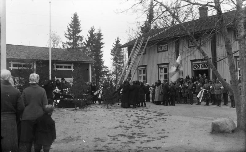 Salomon Paavolan hautajaiset. Paavolan talon pihamaa