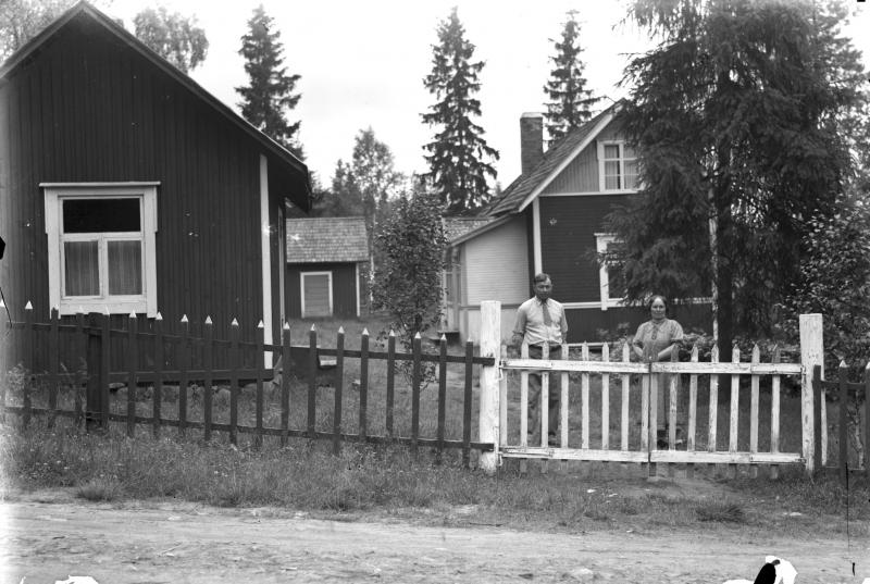 Vihtori ja Lyydia Yhtiö (ent. Välkky, os. Myllymäki) oman talonsa portilla. (nyk. Moisio) Valokuvaaja Verner Vanhamäki