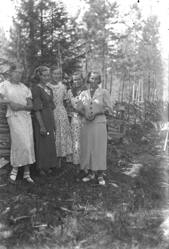 1. Aili Hakojärvi 2. Kerttu Valsten 3. Raila Hakola 4. Laila Hakojärvi 5. Elli Hakojärvi. Valokuvaaja Verner Vanhamäki