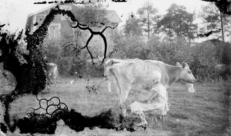 Taustalla Vähtärin talo. Vihtori Paavolan karjaa.