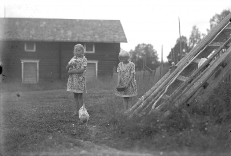 Kuva otettu Ryinkosken rannalla Koskimaalla. Lyyli Anna Maria Koskimaa - Heqenborth, Alma Edla Alina Koskimaa - Toivonen. Valokuvaaja Heikki Heikkola Kuvakoko 83x120