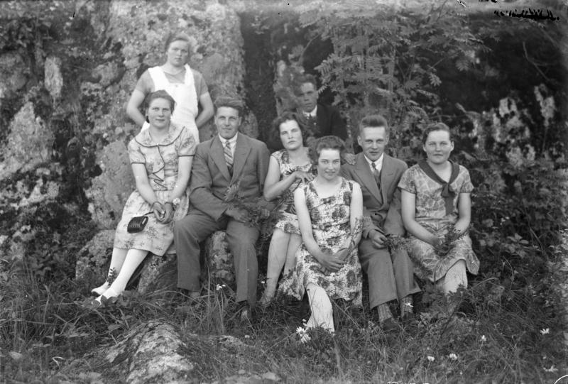 Takana Väinö Annala, Ruusa, Elli Mutka, Viljo Hautala ja Saima. Valokuvaaja Heikki Heikkola Kuvakoko 83x120