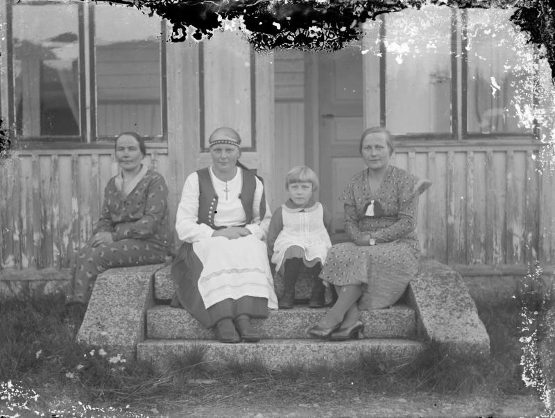 Vas. Hilda Fräntilä - Muumäki, Lyyli Ojala, Aila Fräntilä sekä Elli Fräntilä os. Sorila. Valokuvaaja Heikki Heikkola