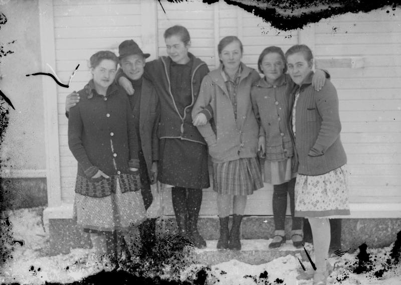 Vas. Martta Keisala, Konsta Tyrni, Hilda Hakojärvi, Annikki Tuuri, Saima Mähönen ja Elli Hakojärvi. Valokuvaaja Heikki Heikkola