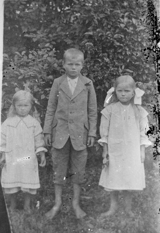 Vasemmalta: Kerttu Lyydi Annikki Peurala myöh. Heikkilä, Tonteri; Reino Johannes Peurala ja Kaino Ellen Elma Peurala myöh. Ojala. Valokuvaaja Heikki Heikkola