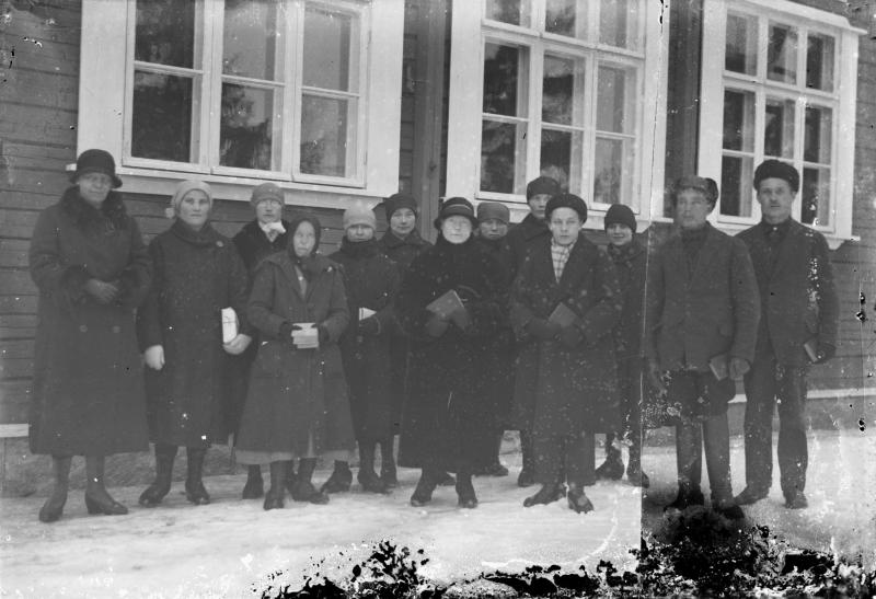 Vas 1. Sally Lehtonen-Taimio, 2. Alli Hauskamaa, 3. Elli Hakola, 4. Hilda Juppo, 6. Hilda Hakojärvi-Kallioniemi, 7. Tyyne Katajapuu, 8. Ida Mähönen-Kiilunen, 10. Väinö Katajapuu, 12. Vihtori Erkkilä, 13. Kalle Häkkinen. Töysän aseman koulu.