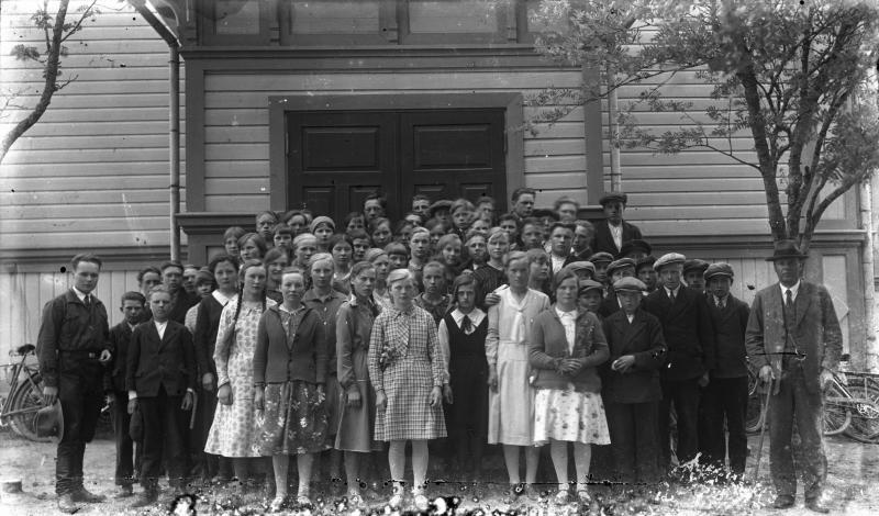 1916 syntyneet rippilapset, rippikoulussa 1931-1932. Konfirmaatio Töysän kirkossa 24.6.1932. Rippilapset: Mursula Armas, Toivola Tauno, Pyylampi Johannes, Akonniemi Tauno, Rantala Viljo, Mattila Vilho, Huvila Uuno, Heikkilä Onni, Lamminmäki Sulo, Lahtinen Onni, Männikkö Matias, Etelä-aho Arvo, Hakala Tauno, Rautio Uuno, Vienola Armas, Viitala Aarne, Suomela Olavi, Lehtinen Lauri, Järvinen Eino, Niemi Tauno, Kiviniemi Toivo, Peltonen Tauno, Pienimäki Sauli, Kuivaniemi Onni, Väliaho Valdemar, Jokela Paavo, Kuitti Karl, Leinonen Arvo, Uusitalo Paavo. Syrjälä Lyyli, Pykälämäki Lyyli, Hirvelä Niini, Hatanpää Aino, Mäntylä Vieno, Ketola Lempi, Hautala Elli, Penttilä Elli, Saarimäki Rauha, Lampila Fanni, Haveri Maria, Autio Martta, Vilmilä Vieno, Hakomäki Ida, Hakomäki Saima, Rankila Lea, Rantala Vieno, Pennala Saimi, Hauta-aho Anni, Tuokko Maria, Jokinen Lyyli, Mäkinen Tyyne, Mäkiranta Laina, Ramsila Anna, Mansikkamäki Saima, Jouttimäki Aino, Rintala Elvi, Kleemola Meeri, Marttila Suoma ja Vainionpää Alli. Oikealla kirkkoherra Väinö Tuomola. Töysän kirkko.