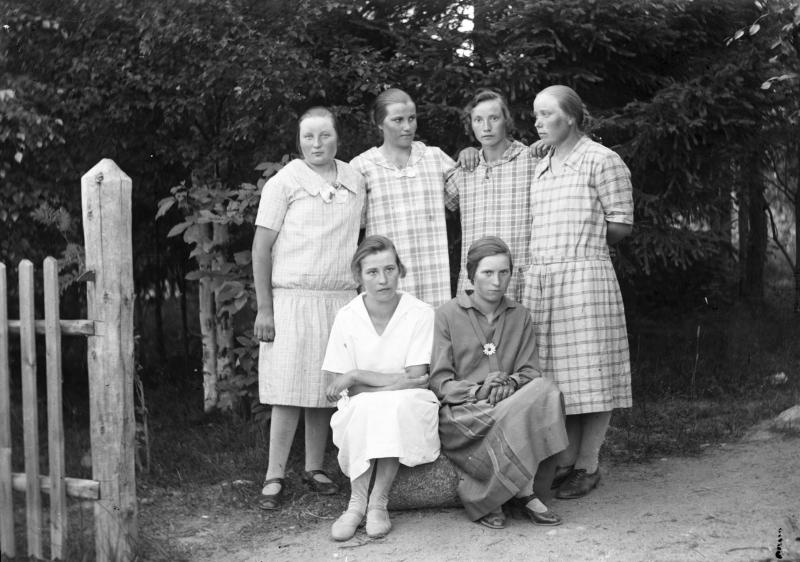Vas. Takana: Maija Pennala, Alli Hauskamaa, Elli Hakola, Iida Mähönen. Edessä vas. Iida Hakola ja Hilda Hakola. Valokuvaaja Heikki Heikkola
