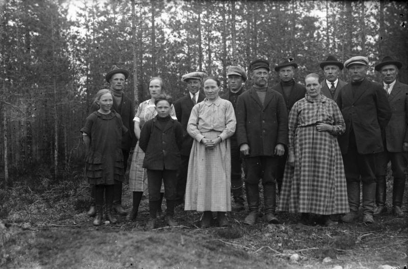 Vas. Saima, Reino, Fanni, ja Toivo Lehtomäki, Tauno Jokela, Kaisa, Toivo ja Heikki Lehtomäki, Eino Myllyaho, Olga, Artturi, Heikki ja Arvo Jokela. Hakojärvi Valokuvaaja Heikki Heikkola