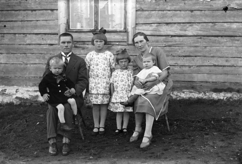 Hilda os. Takala ja Kalle Peltoniemi. lapset: vas. Jorma, Bertta, Viivi (myöh. Haapanen) ja Irma. Valokuvaaja Heikki Heikkola