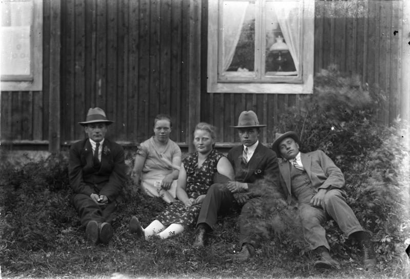 Vas. Reino Ala-Vannesluoma, Maria Syrjälä, Lempi Mäki-Pollari myöh. Luosa, Eino Syrjälä, oik. Kustaa Mäki-Pollari. Valokuvaaja Heikki Heikkola