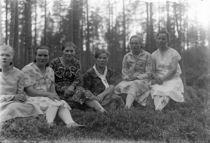 2. vas. Anni Raja-Aho, 3. vas. Maija Housu, 4. Lyyli Housu myöh. Aho, 5. Hilda Koskela myöh. Kaunisto. Valokuvaaja Heikki Heikkola