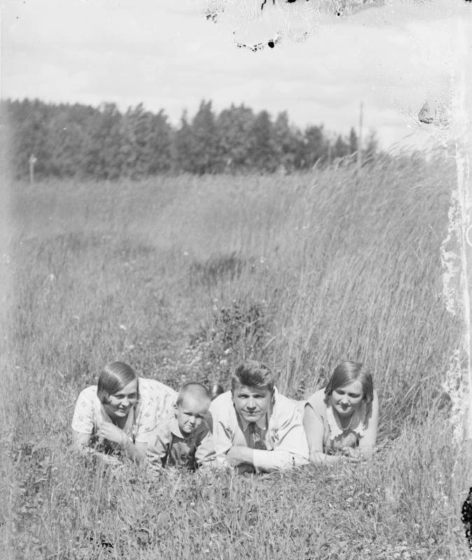 Vas.Hilda Niittynen os. Myllyniemi. Risto Kantola, Ville Kantola.Bertta Kantola os. Myllyniemi Valokuvaaja Heikki Heikkola
