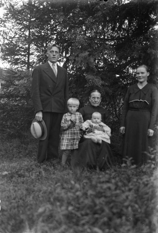 Kalle Ojala, lapset Irma ja Vappu, Maria Ojala, Kaino Ojala os. Peurala. Valokuvaaja Heikki Heikkola Kuvakoko 83x120