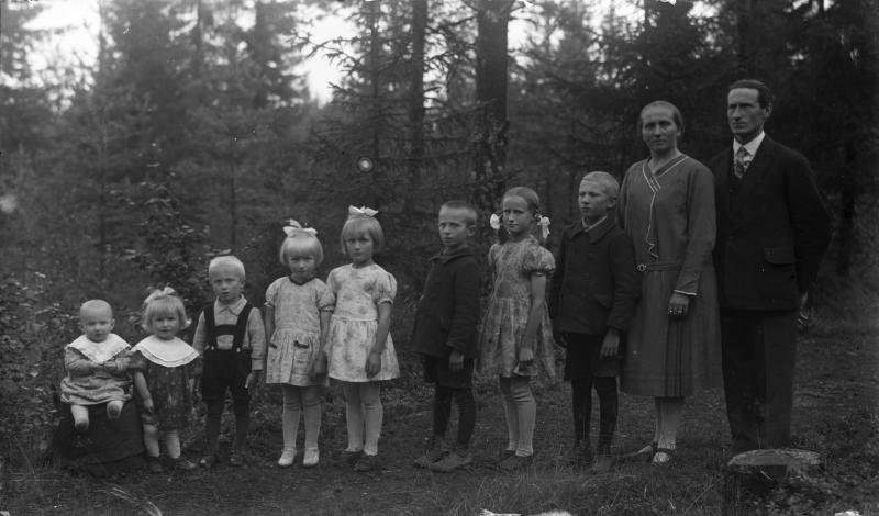 Aino (os. Matara) ja Arvid Mäkelä, lapset oik. Aimo, Aino, Armo, Airi, Aila, Antti, Anna-Liisa ja Ahti.