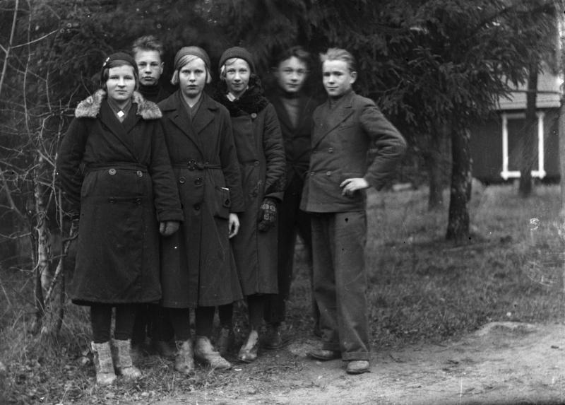 Takana vas. Alpo Hautala, 3. vas. Eeva Paavola. V. 1918 synt. rippikoululaiset. Valokuvaaja Verner Vanhamäki