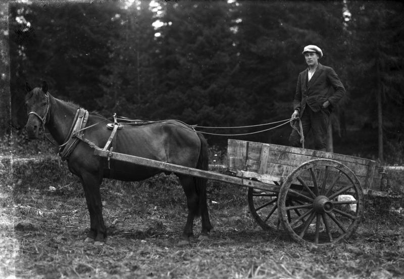 Lannan eli Sonnanajokärryt - keikkakärryt. Huom. hevosen valjaat Valokuvaaja Heikki Heikkola Kuvakoko 83x120