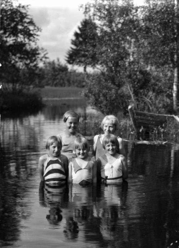 Edessä vas. Saima Pelander - Tuomisto, Irja Takala - Jokiaho, Aune Takala - Kuusela. Takana vas. Anna Ylämäki - Huikuri, Anna-Liisa Mäkelä - Sorokin. Valokuvaaja Heikki Heikkola Kuvakoko 83x60