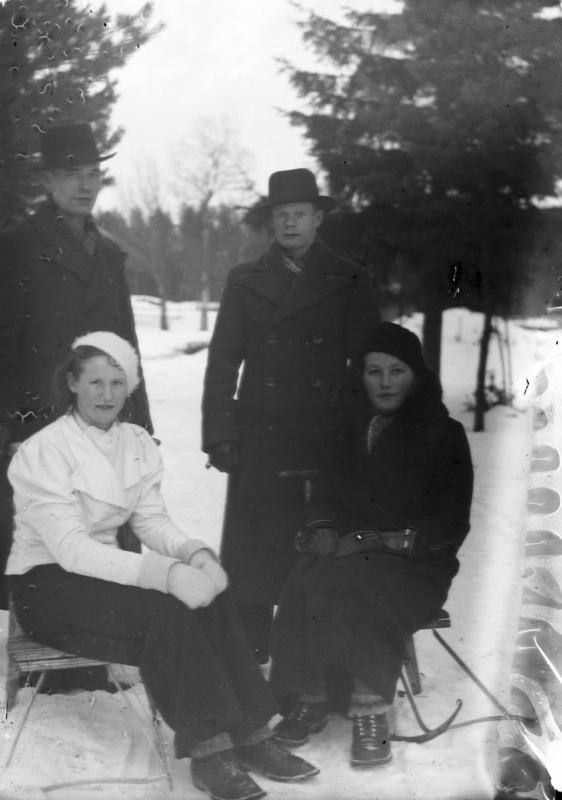 Onni Lamminaho, Aino Mäkelä myöh. Tuokko, Arvo Kilkanen sekä Kerttu Jokela - Väliaho. Valokuvaaja Heikki Heikkola Kuvakoko 83x60