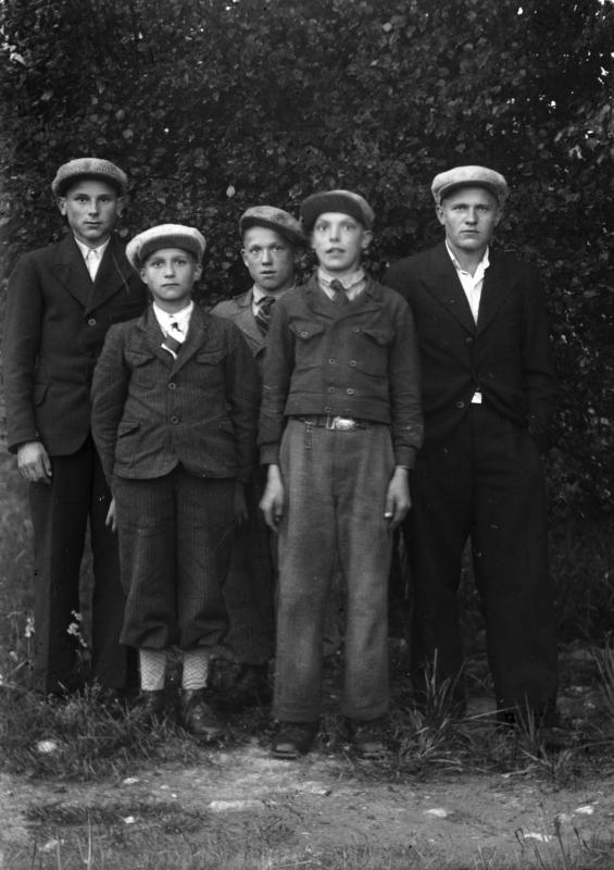 Erkki Lamminaho, Toivo Luoma, Otto Pihlajamäki, Reino Lamminaho ja Kalervo Kiviaho. Valokuvaaja Heikki Heikkola Kuvakoko 83x60